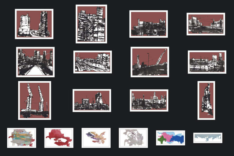 This video installation represents an organic metropolis in continuous change, a kind of huge body that moves, breathes, and strides in unison with its innumerable and invisible inhabitants. To do this, I started from Francesco’s drawing; I asked him to draw a series of buildings and I cut out and pasted them to create a big anthropic landscape. In the video artwork you can see some of Francesco’s buildings and color stains that I used for the production.